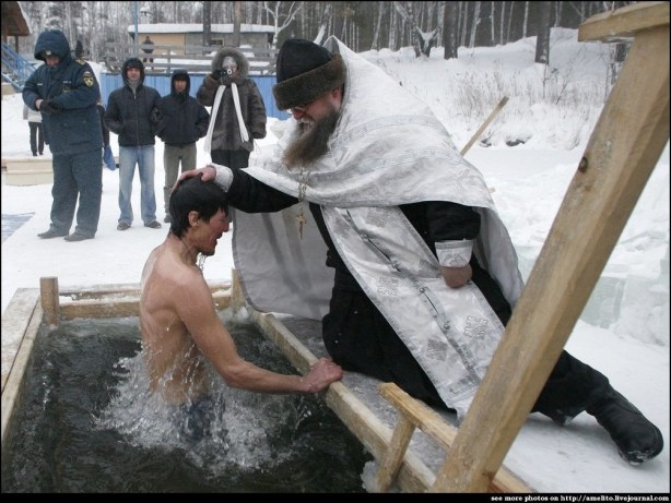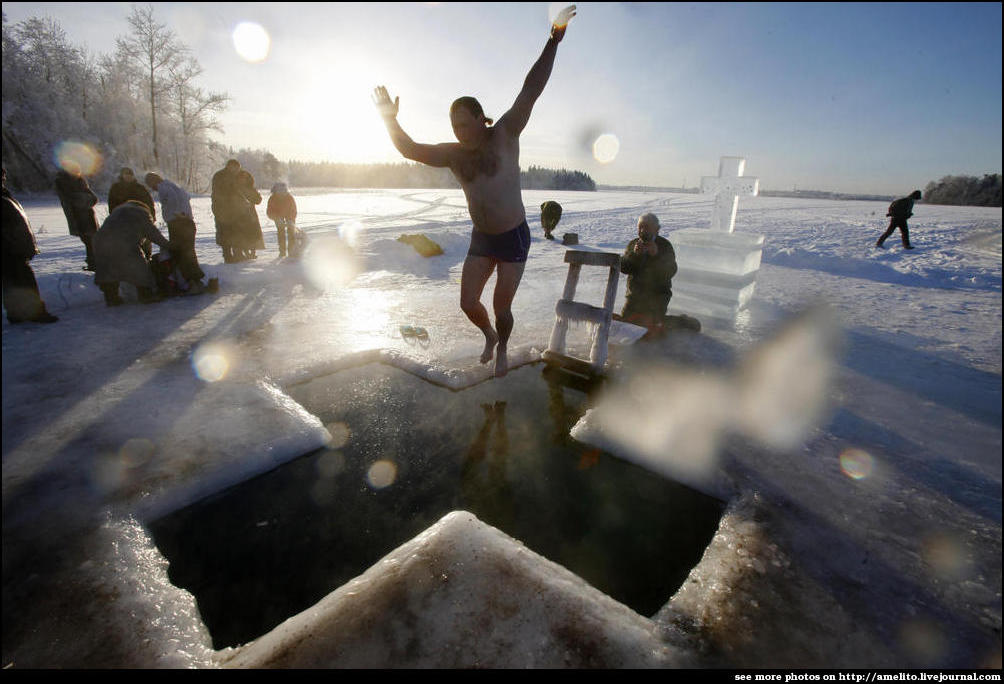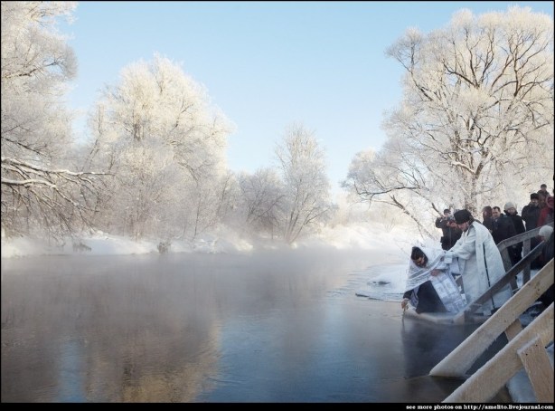 La Epifanía Cristiana Ortodoxa celebra el bautismo de Cristo en el río Jordán, seguidores de la tradición ortodoxa, se zámbullen en agujeros hechos en el hielo de las aguas congeladas, singular ritual de la Iglesia Ortodoxa.