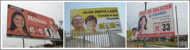 Otros partidos y alianzas que han dado cabida en Lima a ciudadanos evangélicos son el Partido Aprista Peruano, en cuya lista postula la pastora Yris de Salazar, de la Iglesia Tabernáculo de Lima, con el número 33; la Alianza Perú Posible, del candidato presidencial Alejandro Toledo, en la cual postula la pastora Juana de Hoyos, de la Iglesia Yo Soy, también con el número 33; y el Partido Gana Perú, del candidato Ollanta Humala, donde postula la comunicadora Pilar Cueto, de la Iglesia Fuente de Bendición, con el número 32.