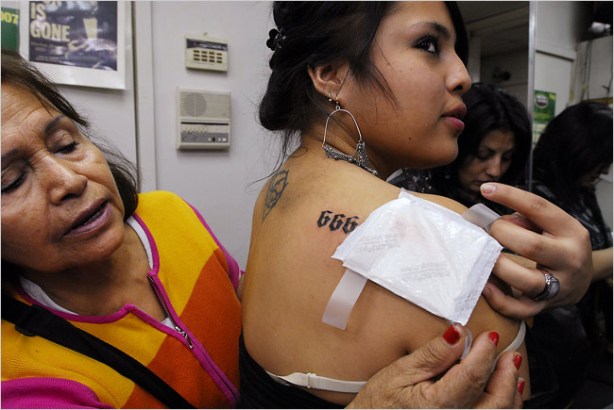 «Me quedé en shock. Mi mente seguía funcionando, dándose cuenta de lo que me había pasado. Sentía coraje por todo el cuerpo. Un calor enorme. Me dio por pensar que igual me salvaban la pierna, pero ya ve, ahora llevo una prótesis..». Maritza Guzmán, hondureña de 25años, borda la iniciales del albergue Jesús el Buen Pastor en un mantel mientras me cuenta su drama. Intentó subirse a la Bestia en marcha cuando ya había cogido velocidad. Se agarró a la escalerilla pero en el ultimo momento vaciló. Y con la Bestia no se vacila, porque no tiene piedad. Maritza saltó pero se dio cuenta de que su pierna derecha no hacia pie en el escalón, sino que era succionada por la rueda del tren. Succionada y seccionada. Ese día acabo su viaje como ilegal a Estados unidos. Era el primer día y ahora espera su deportación en esta posada para migrantes.