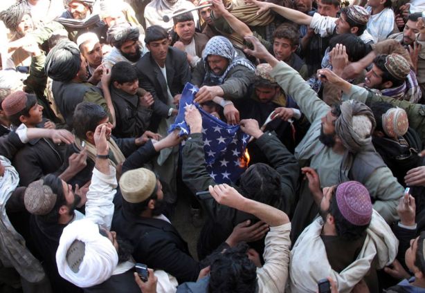 La misión de la OTAN en Afganistán ha ordenado investigar la supuesta quema del Corán. «La gente está protestando porque las tropas internacionales destruyeron y quemaron un Corán», afirmó Roshna Khalid, el portavoz regional de Parwan, donde está ubicada la base. Según Khalid, un grupo de empleados afganos de la base militar vieron cómo militares estadounidenses estaban quemando anoche partes de un Corán, y luego se las arreglaron para sacar del centro páginas quemadas de su libro sagrado.  S. SABAWOON (EFE)