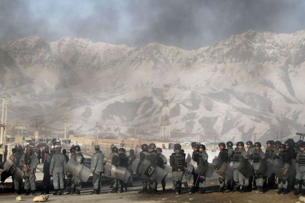 Fuerzas antidisturbios, desplegadas durante una manifestación en Kabul, tras la oración del viernes.