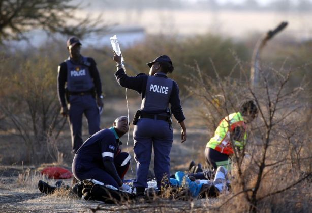 La policía inspecciona los cuerpos de los mineros abatidos durante la protesta. SIPHIWE SIBEKO (REUTERS)