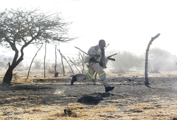 Mineros avanzan sobre las posiciones de la policía, mientras estos abren fuego contra ellos. SIPHIWE SIBEKO (REUTERS)