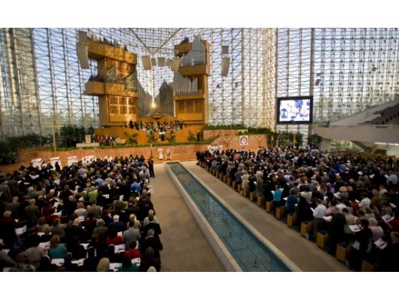 Más de 1.200 católicos llenaron la catedral para el primer evento católica celebrada en la mega-iglesia protestante desde el campus fue comprada por la Diócesis de Orange, en una venta ordenada por la corte de bancarrota.